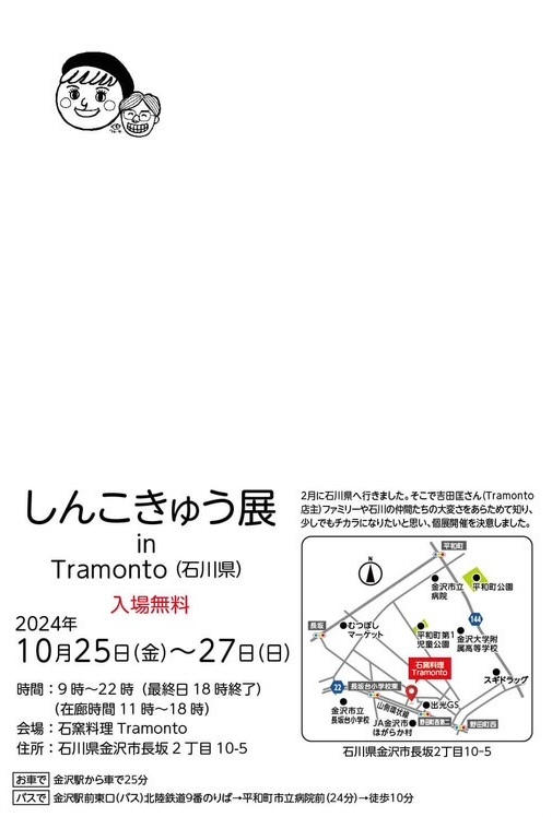 - 「しんこきゅう展 in Tramonto(石川県)」を開催します。